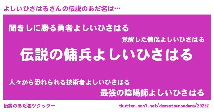 | ヒーロー風カッコイイあだ名 | 『仮面ヨシダー』『ネオヨシイヒサハル』 |