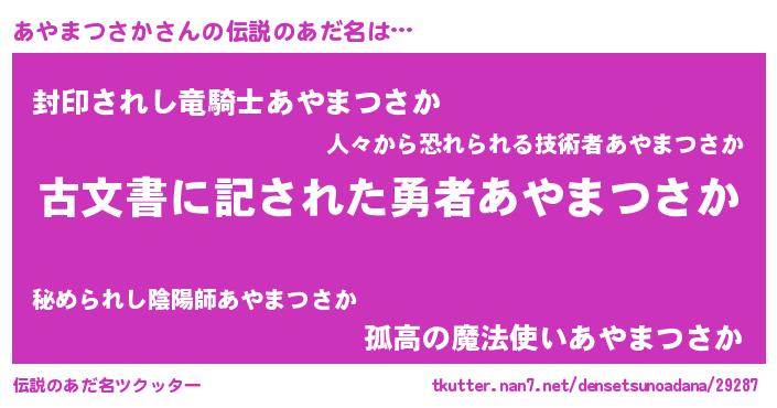 | ヘコむあだ名 | 『あやまつさか(苦笑)』『あやふぇ~』 |