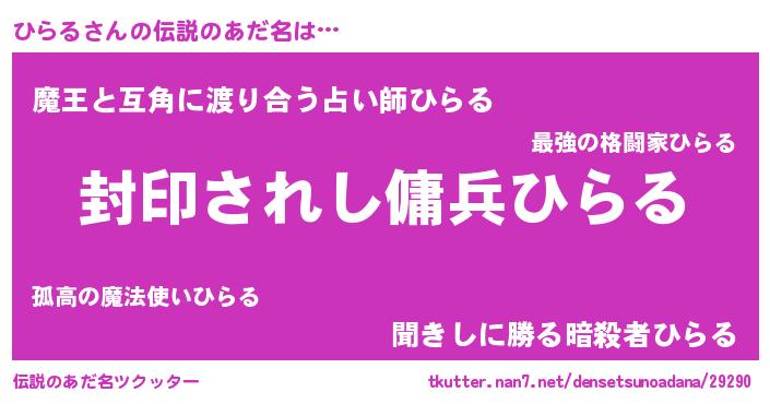 | ファンタジー風あだ名 | 『ヒラフェル』『ユリヒラヴァット』 |