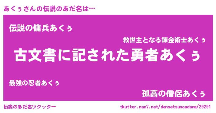 | ヒーロー風カッコイイあだ名 | 『ネオアクゥ』『スーパーアクゥ』 |