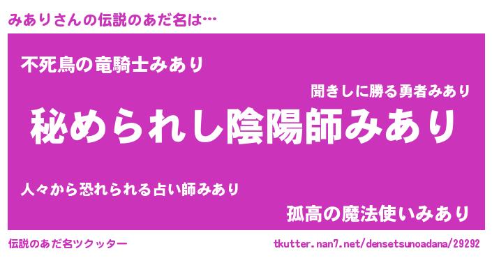 | 女子向けラノベタイトル風あだ名 | 『みありの雑貨屋さん』 |