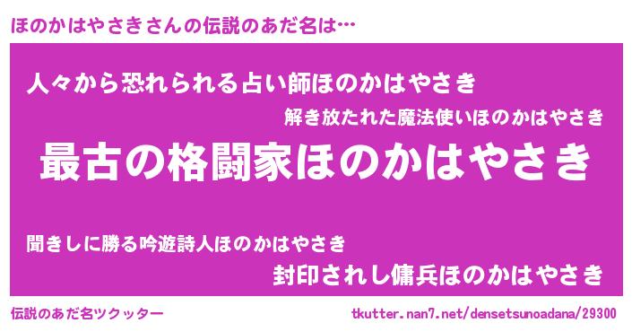 | 意味不明あだ名 | 『ほのかはやさきフォーエバー』 |