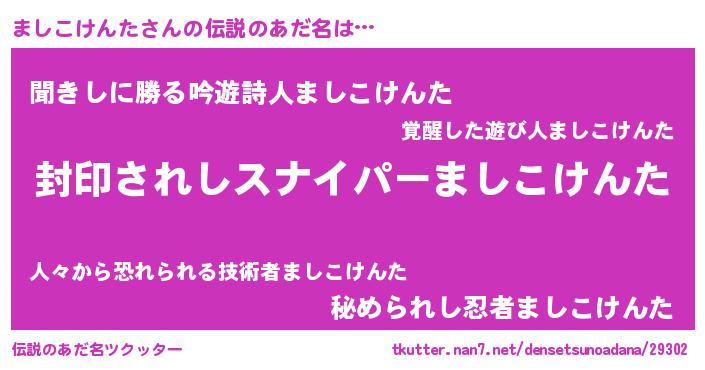| 胡散臭い通販商品みたいなあだ名 | 『億万長者になれる霊験あらたかなお札…その名も「ましこけんた」』 |