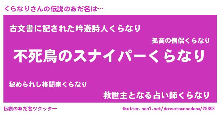 | 女子向けラノベタイトル風あだ名 | 『くらなり姫と円卓の騎士』 |