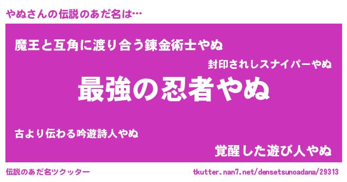 | ヒーロー風カッコイイあだ名 | 『最強戦士ヤヌ』『ウルトラやぬマン』 |