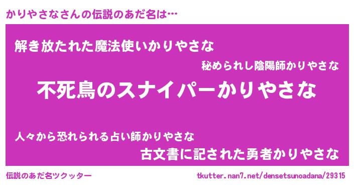 | ヒーロー風カッコイイあだ名 | 『スーパーカリヤサナ』『仮面カリダー』 |