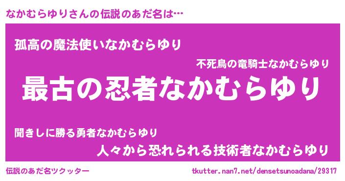 | 男性向けラノベタイトル風あだ名 | 『この素晴らしい世界になかむらゆりを!』 |