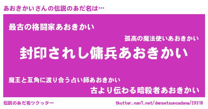 | ヒーロー風カッコイイあだ名 | 『スーパーアオキカイ』『仮面アオダー』 |