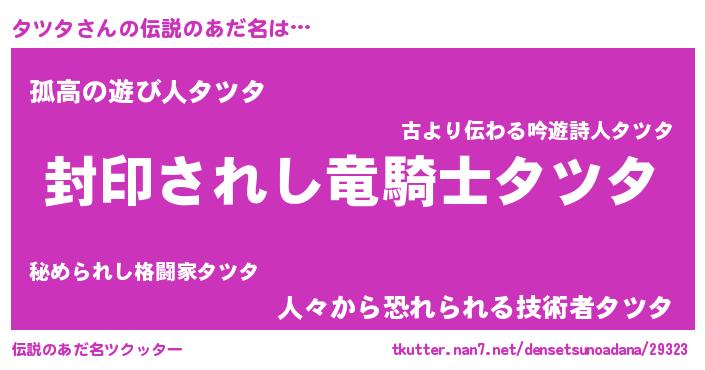 | ヒーロー風カッコイイあだ名 | 『スーパータツタ』『黄金騎士タツ』 |