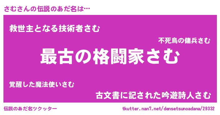 | ポケモン風あだ名 | 『サムキング』『サムダネ』 |