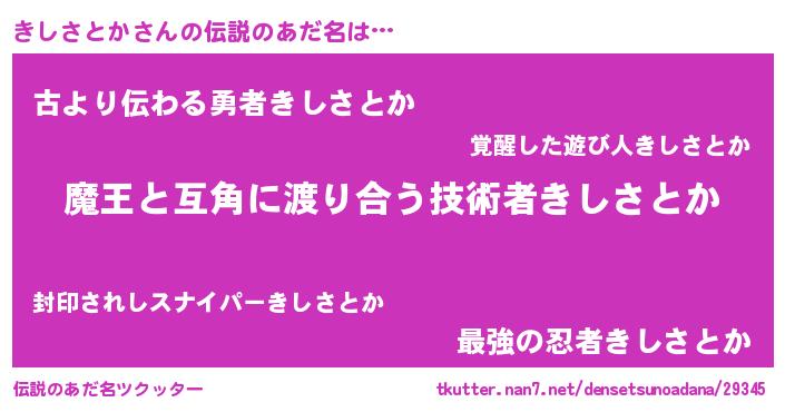| 女子向けラノベタイトル風あだ名 | 『闇のきしさとか』『きしさとかの婚約者』 |
