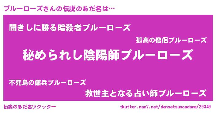 | 男性向けラノベタイトル風あだ名 | 『魔弾の王とブルーローズ』 |