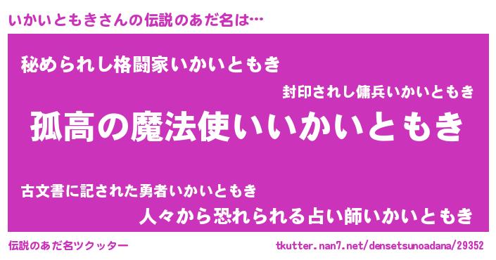 | 胡散臭い通販商品みたいなあだ名 | 『信頼と実績のサプリメント…その名も「いかいともき」』 |
