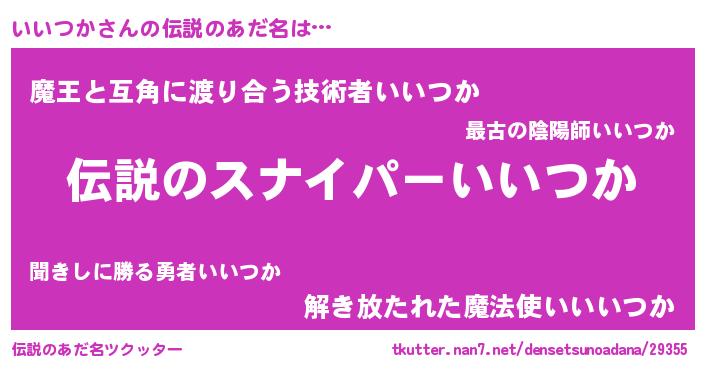 | 胡散臭い通販商品みたいなあだ名 | 『必ず成功する霊験あらたかなお札…その名も「いいつか」』 |