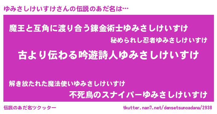 | 意味不明あだ名 | 『住所不定無職ゆみさしけいすけ(4歳)』 |