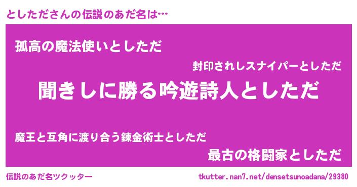| 男性向けラノベタイトル風あだ名 | 『としただという概念が存在しない退屈な世界 』 |