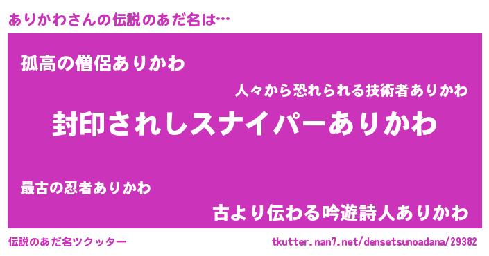 | 胡散臭い通販商品みたいなあだ名 | 『億万長者になれる霊験あらたかなお札…その名も「ありかわ」』 |