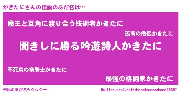| 意味不明あだ名 | 『永久保存かきたに』 |