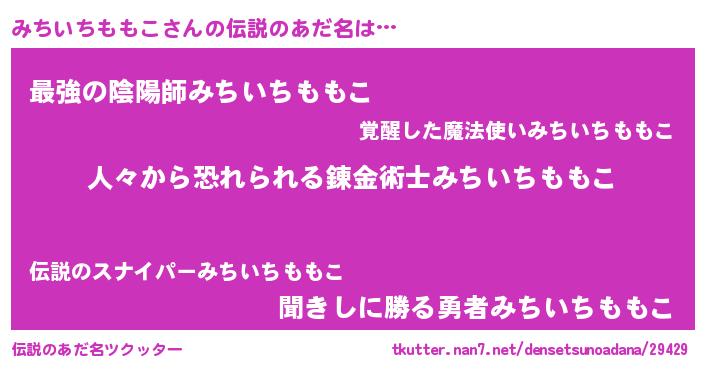 | 男性向けラノベタイトル風あだ名 | 『おまえをオタクにしてやるから、俺をみちいちももこにしてくれ! 』 |