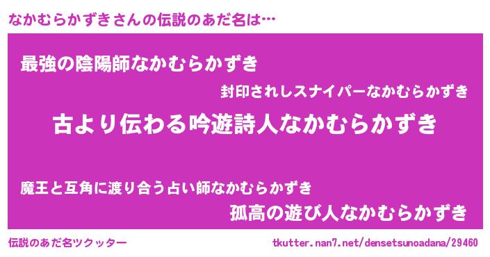 | 男性向けラノベタイトル風あだ名 | 『なかむらかずきという概念が存在しない退屈な世界 』 |