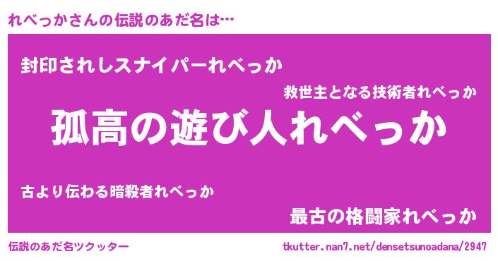| ファンタジー風あだ名 | 『ユリレベヴァット』『ファントムレベス』 |
