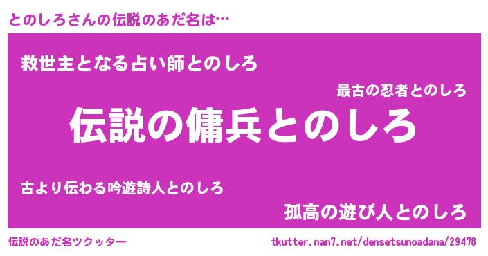 | 胡散臭い通販商品みたいなあだ名 | 『必ず成功する水晶球…その名も「とのしろ」』 |