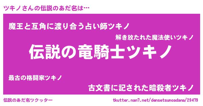 | 男性向けラノベタイトル風あだ名 | 『ツキノスレイヤー』『緋弾のツキノ』 |