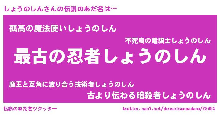 | 男性向けラノベタイトル風あだ名 | 『転生したらしょうのしんだった件』 |