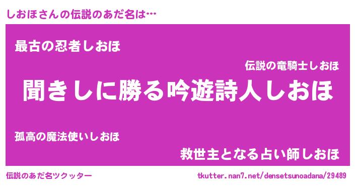 | 意味不明あだ名 | 『住所不定無職しおほ(7歳)』 |