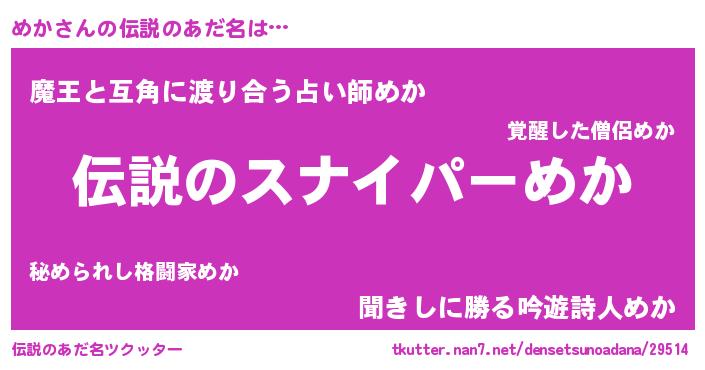| ヒーロー風カッコイイあだ名 | 『スーパーメカ』『天空の使者めか』 |