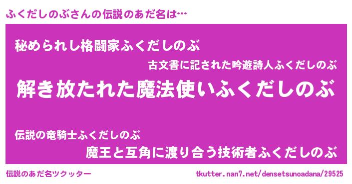 | 女子向けラノベタイトル風あだ名 | 『ふくだしのぶの卵を拾いまして』 |