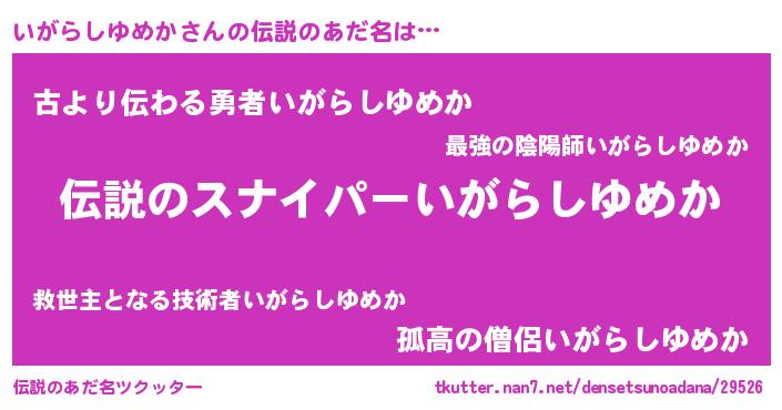 | ヘコむあだ名 | 『いがっふぃ~』『いがらしゆめか(遠い目)』 |