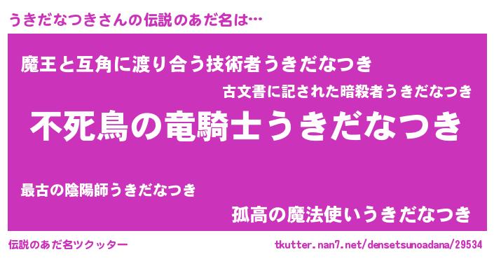 | 女子向けラノベタイトル風あだ名 | 『うきだなつき姫と円卓の騎士』 |
