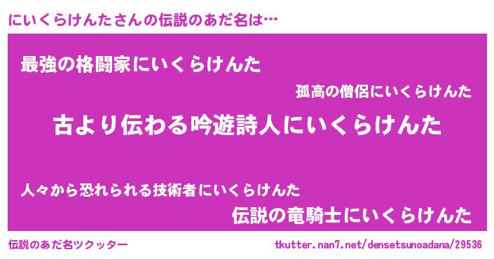 | ヒーロー風カッコイイあだ名 | 『ネオニイクラケンタ』『黄金騎士ニイ』 |