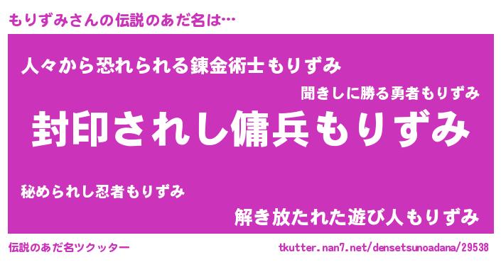 | 男性向けラノベタイトル風あだ名 | 『モリズミアートオンライン』 |