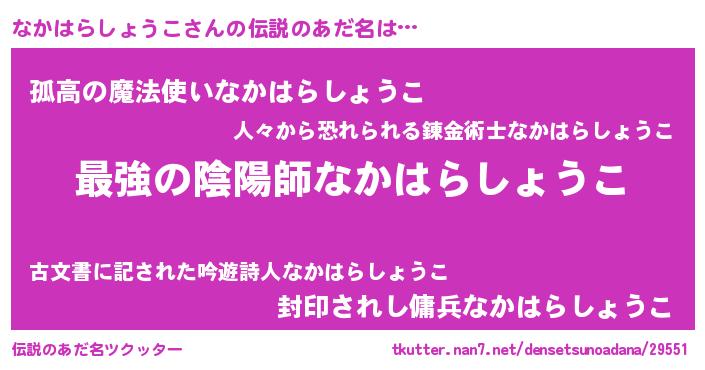 | 意味不明あだ名 | 『なかはらしょうこフォーエバー』 |