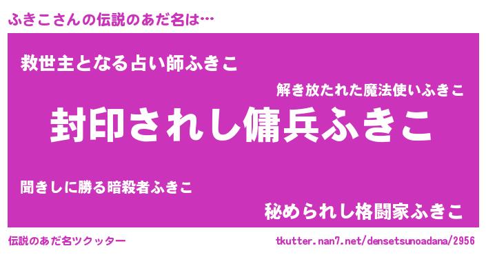 | 男性向けラノベタイトル風あだ名 | 『うちのふきこが世界を掌握している!』 |