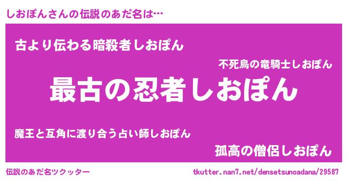 | ヒーロー風カッコイイあだ名 | 『ウルトラしおぽんマン』『ネオシオポン』 |