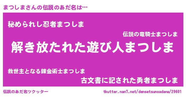 | 男性向けラノベタイトル風あだ名 | 『はたらくまつしまさま!』 |