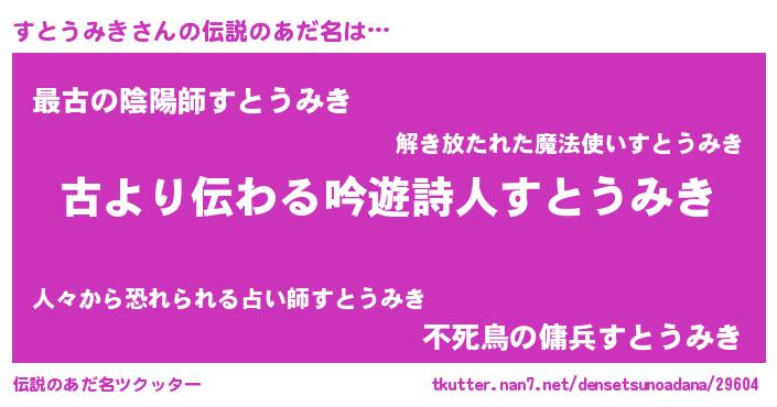 | 意味不明あだ名 | 『永久保存すとうみき』『自称すとうみき』 |