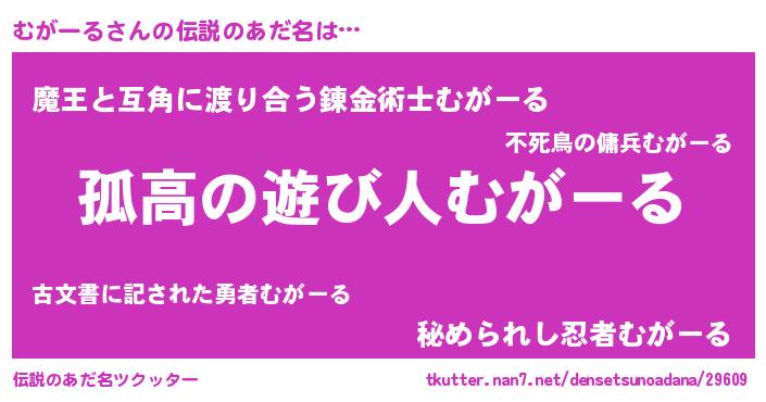 | ヒーロー風カッコイイあだ名 | 『暗黒騎士ムガ』『正義の使者むがーる』 |
