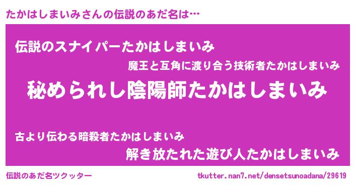 | ファンタジー風あだ名 | 『エターナルタカハシマイミー』 |