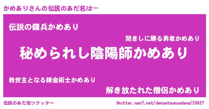 | 意味不明あだ名 | 『かめありフォーエバー』 |