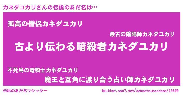 | ヒーロー風カッコイイあだ名 | 『仮面カネダー』『ネオカネダユカリ』 |