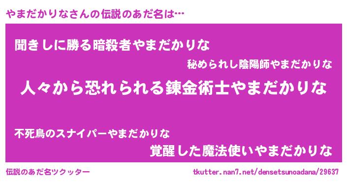 | 男性向けラノベタイトル風あだ名 | 『おまえをオタクにしてやるから、俺をやまだかりなにしてくれ! 』 |