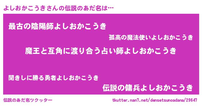 女子向けラノベタイトル風あだ名 | 『よしおかこうき恋絵巻』 |