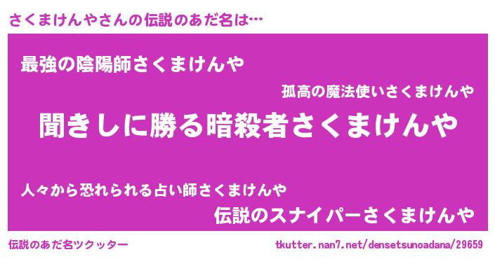 | 男性向けラノベタイトル風あだ名 | 『さくまけんやという概念が存在しない退屈な世界 』 |