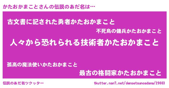 | ヒーロー風カッコイイあだ名 | 『正義の使者かたおかまこと』 |