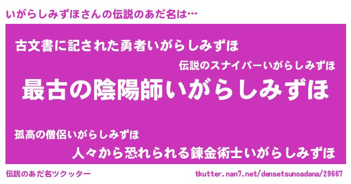 | ヒーロー風カッコイイあだ名 | 『仮面イガダー』『ネオイガラシミズホ』 |