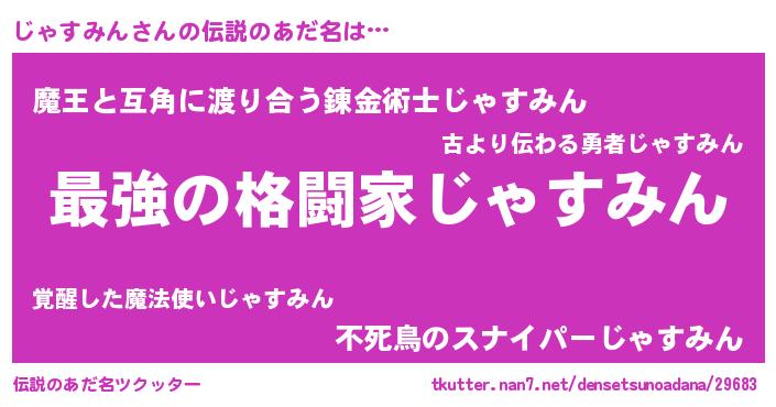 | 意味不明あだ名 | 『住所不定無職じゃすみん(12歳)』 |